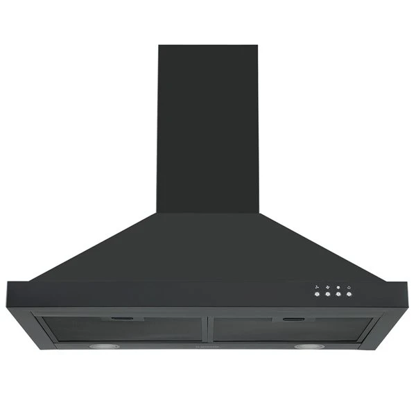 - 30-inch wall mount pyramid range hood in black stainless steel