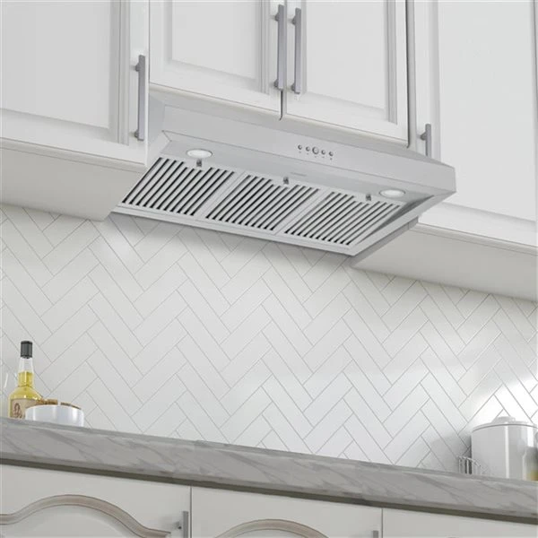 This professionally engineered under-cabinet range hood combines a powerful 440 CFM motor with 3-speed options to leave the air in your kitchen clean and fresh. Long-lasting LED lights will warmly brighten your cooking surface at a fraction of the cost of conventional lights. The restaurant style baffle filters provide extra grease trapping capabilities and are easy to clean.
