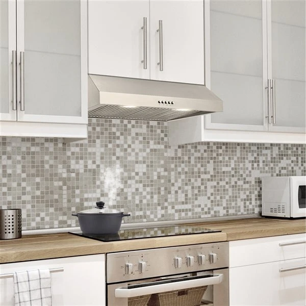 Aria offers a unique line of premium range hoods. This sleek modern design will complement any kitchen decor. The 30-in 370 cfm under cabinet range hood accommodates outdoor venting. It features a 3-speed push button and a minimum sound level of 1.7 sones for a quiet experience while range hood is active. It is easy to install, use and maintain. Enjoy top performance without compromising on style with Aria’s range hood, the perfect addition to your kitchen.