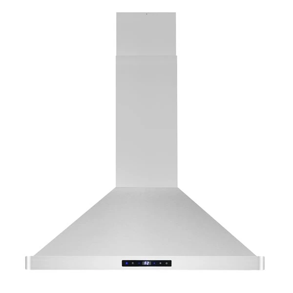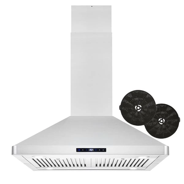 Presenting the newest addition to the Cosmo(TM) line of stylish professional filtering systems. This 30-in stainless steel island range hood is in a class of its own. Coveted by kitchen design experts for its sophistication and ultra-modern aesthetic that seamlessly complement a variety of kitchen designs. Its modern features include commercial grade 430 stainless steel and a 380 CFM centrifugal motor dedicated to ridding your house of lingering aromas. Dishwasher-safe premium stainless steel baffle filters to trap grease and oil. 4 x 2W LED lighting to illuminate your cook top. For added convenience, control the range hood from either side of your kitchen island with dual-sided touch control panel and remote control device. Includes 3-prong power plugs for easy use.