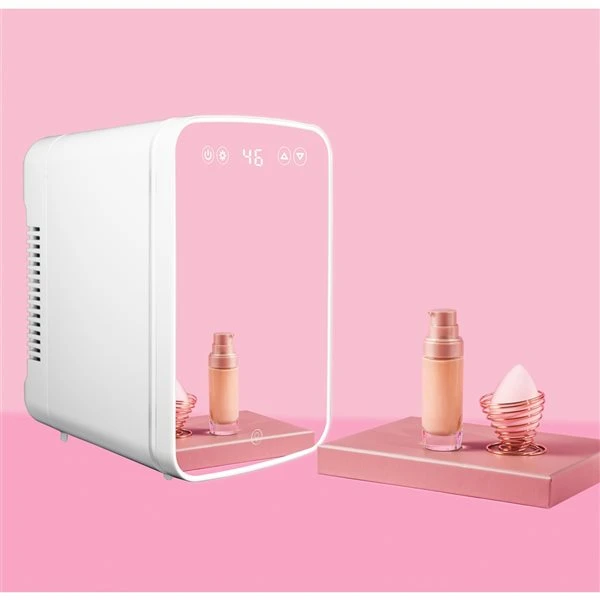 Don’t want your bathroom counters congested up with makeup products? Keep face masks, skin care products, cleansers, makeup, and more chilled for more effective application and longer lasting products. Don’t love the idea of your beauty products being stored next to your food products? Enter this stylish compact fridge, designed for smaller areas, such as bedrooms, dorm rooms, and makeup tables. This mini fridge by Danby offers 0.26 cu. ft. (7.4L) of space, big enough to cool stuff. Equipped with a convenient touch activated front door mirror with an LED light with dimmer capabilities, perfect for applying your products. The adjustable electronic thermostat offers a cooling range of 36- 46°F (2-8°C). This small refrigerator is portable, weighing less than 7 lbs, and comes with a 12V accessory cable for the car. There are two adjustable shelves allowing for maximum storage space.