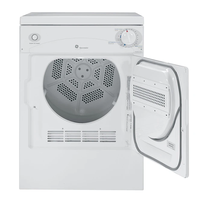 GE Spacemaker Electric Compact Dryer – 3.6-cu Ft – White – Stackable – 3 Cycles – Reversible Door Swing