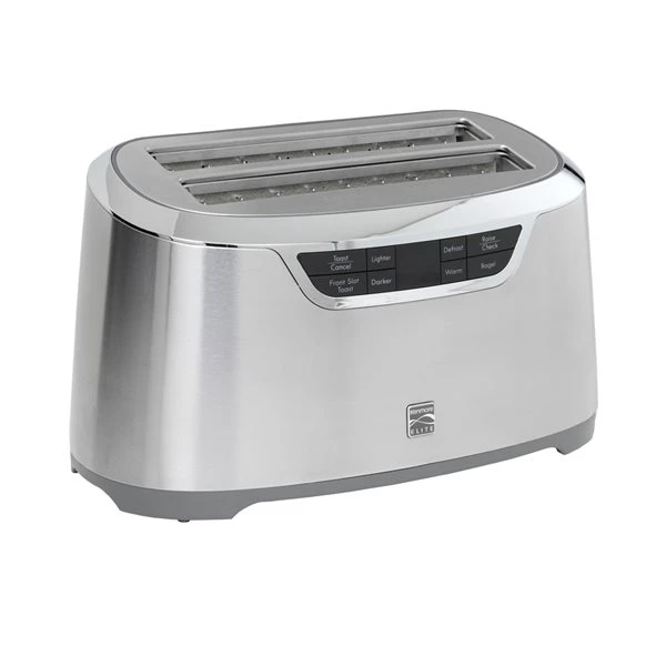 Simplify your morning routine with the elegant stainless steel Kenmore Elite 4-slice toaster. With extra wide long slots, electronic controls and a variety of smart settings, you can enjoy a perfectly toasted bagel or slice of artisanal toast whenever you like. One-touch auto-lift function prevents burned fingers and a digital countdown timer shows exactly when your toast will be ready.