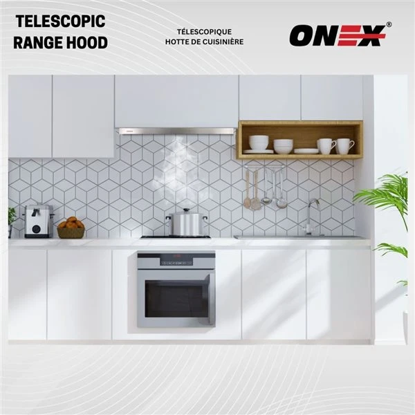 - DISHWASHER SAFE aluminum mesh filter: ONEX® range hood comes with aluminum mesh filter that are easy to pop out and can be places in the dishwasher for easy cleaning
