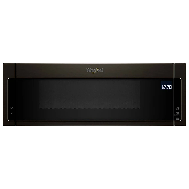 This over-the-range microwave from Whirlpool (TM) is an ideal product for small kitchens. Keep a fresh air in your kitchen with a 400 CFM motor class high performance venting that quickly eliminates smoke, odor and moisture. Fit tall glasses, wide plates and big bowls in this low profile microwave that still has enough room for all the essentials with 1.1 cu. ft. of purposeful capacity. With a cooking power of 1000 W, large dishes can be cooked efficiently. The CleanRelease (R) nonstick interior can be cleaned with a damp cloth, without special cleaning solution, while the stainless steel exterior is fingerprint resistant.